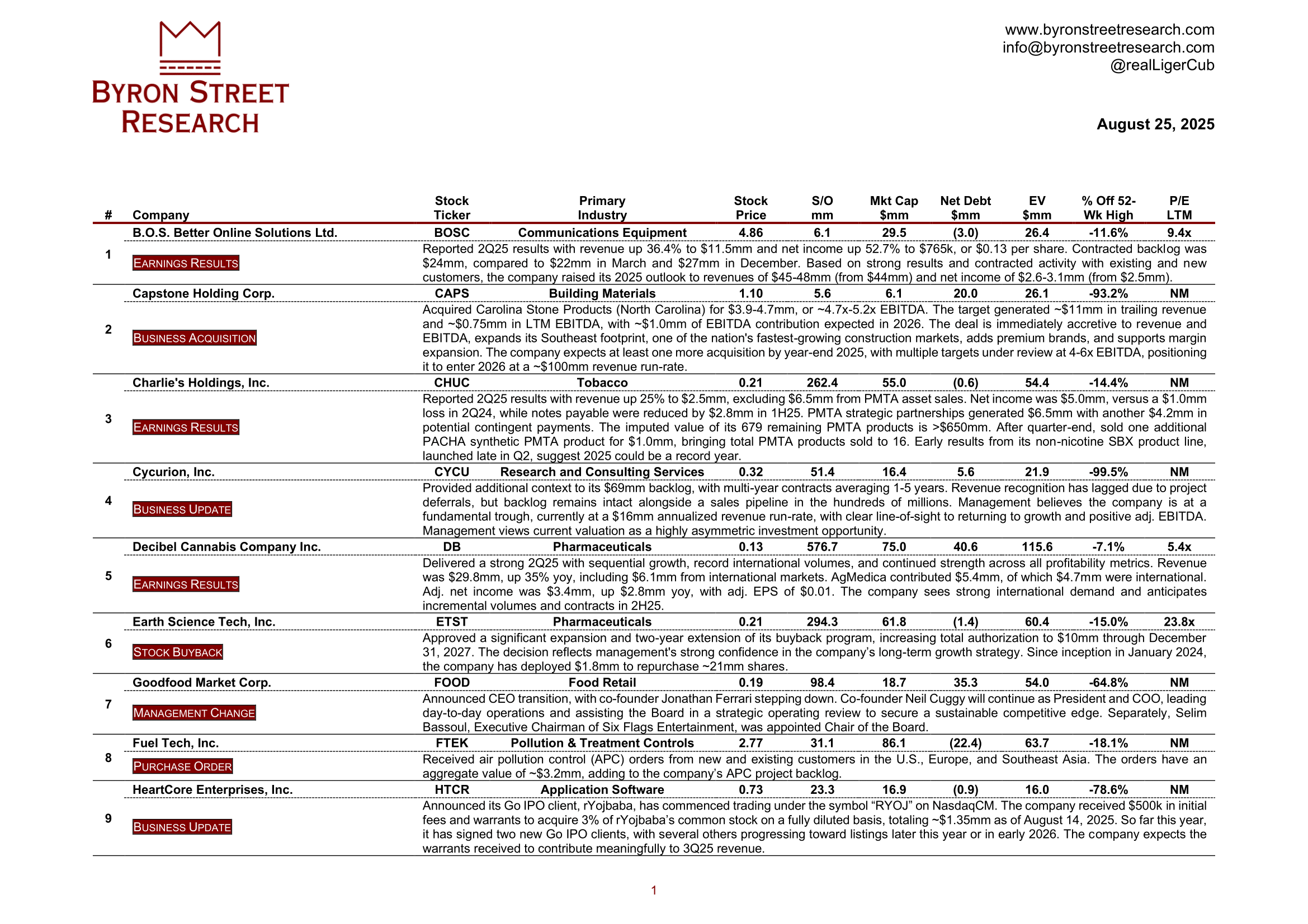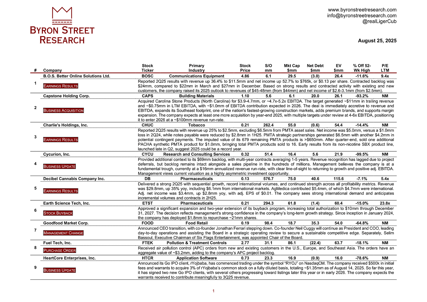 Earnings Results: Reported 2Q25 results with revenue up 36.4% to $11.5mm and net income up 52.7% to $765k, or $0.13 per share. Contracted backlog was $24mm, compared to $22mm in March and $27mm in December. Based on strong results and contracted activity with existing and new customers, the company raised its 2025 outlook to revenues of $45-48mm (from $44mm) and net income of $2.6-3.1mm (from $2.5mm).