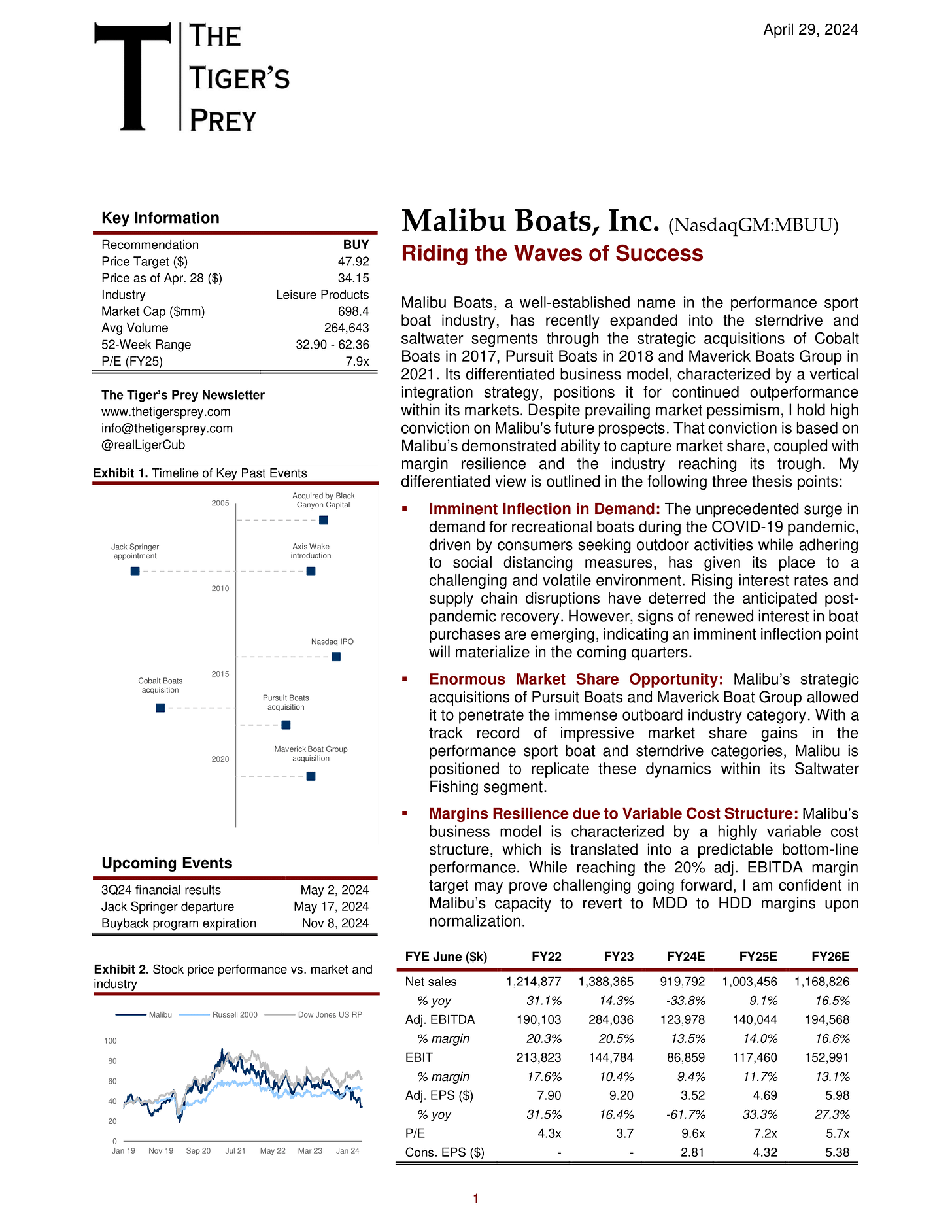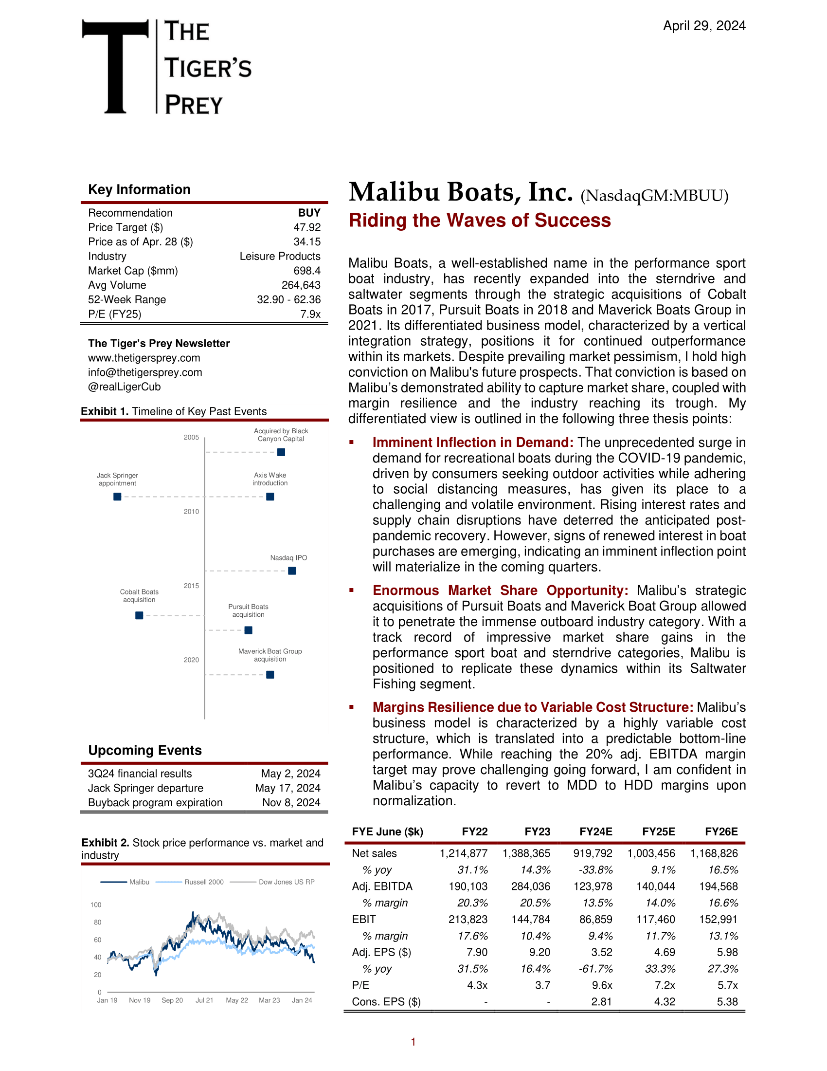 Malibu Boats, Inc. (NasdaqGM:MBUU)Riding the Waves of SuccessApr 29, 2024∙ Paid841ShareStatus: Closed | Initiation Price: $34.15 | Result: +8.0%SubscribeScroll down to download the full report and model.This post is for paid subscribersSubscribeAlready a paid subscriber? Sign in