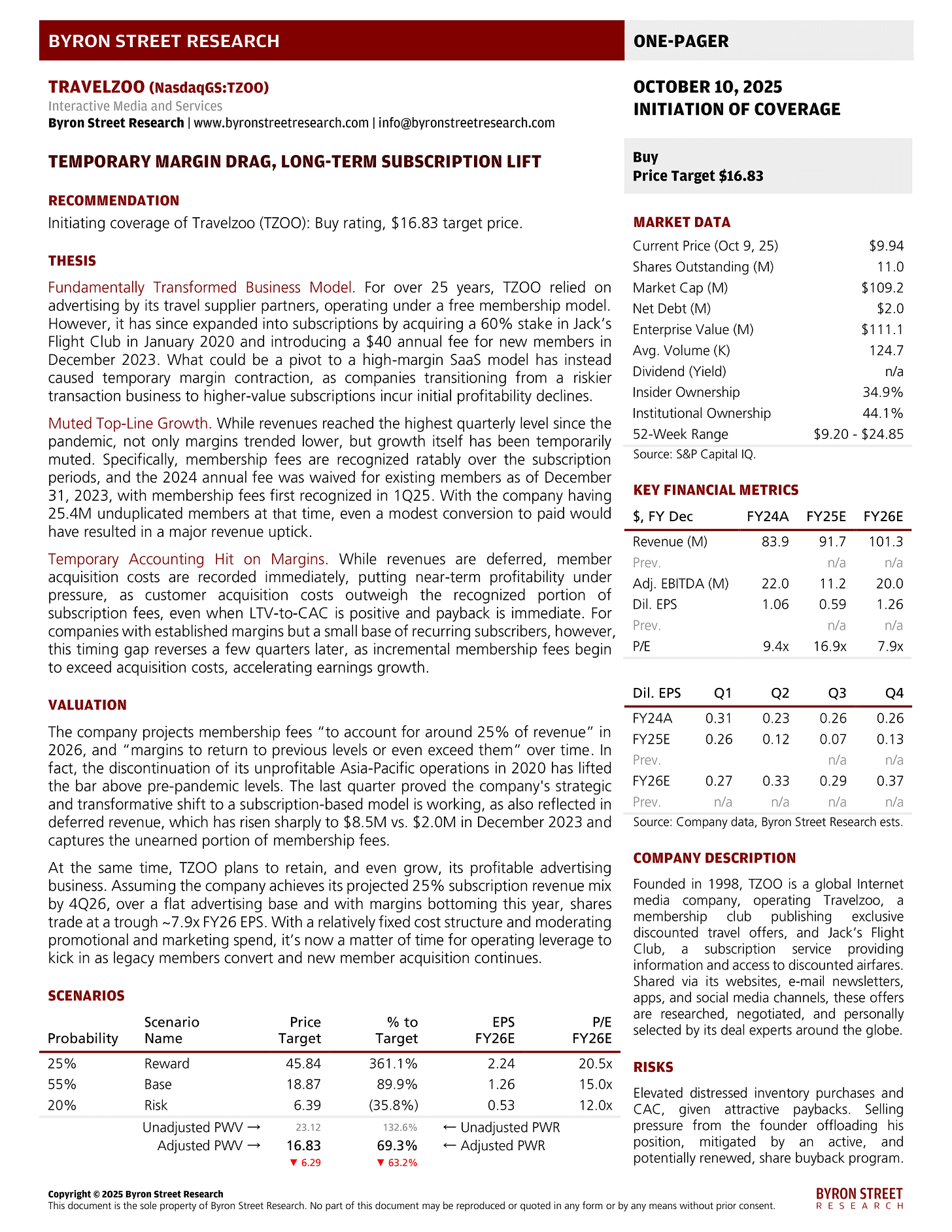 Initiating coverage of Travelzoo (TZOO): Buy rating, $16.83 target price.